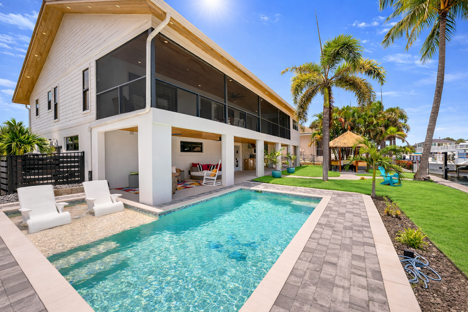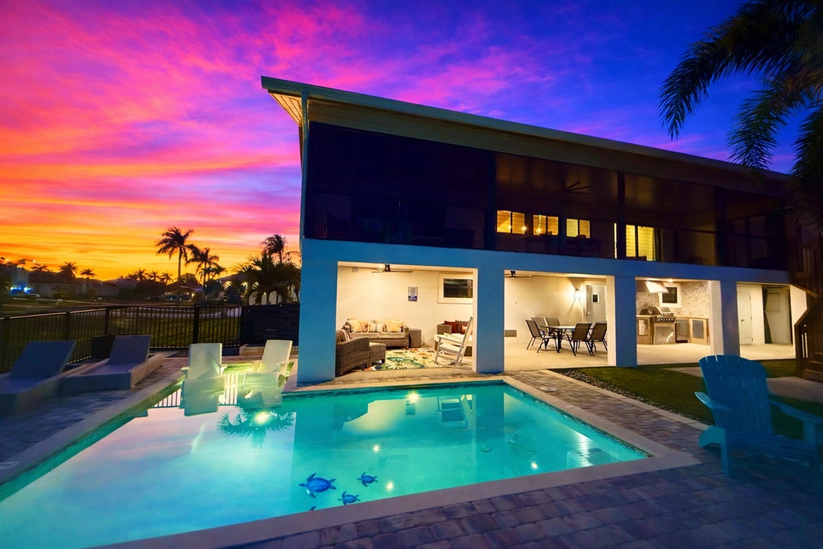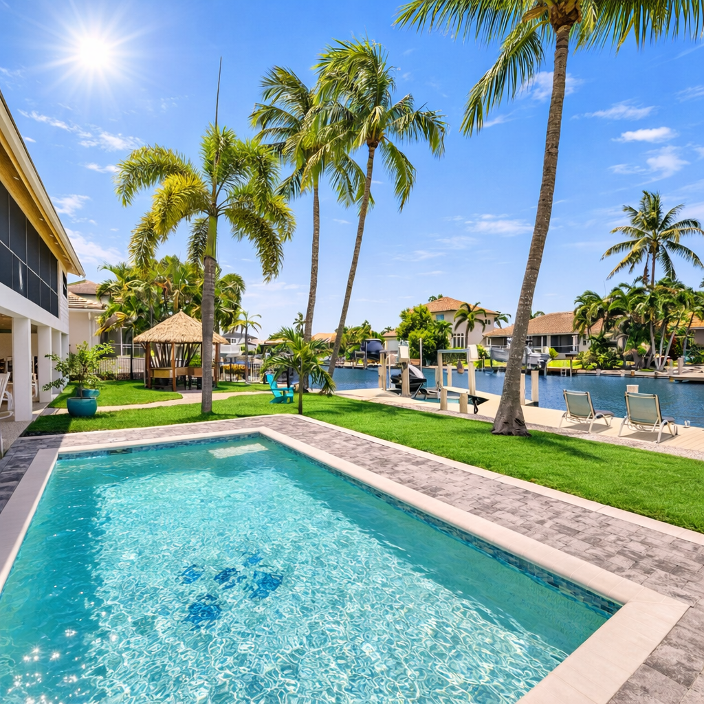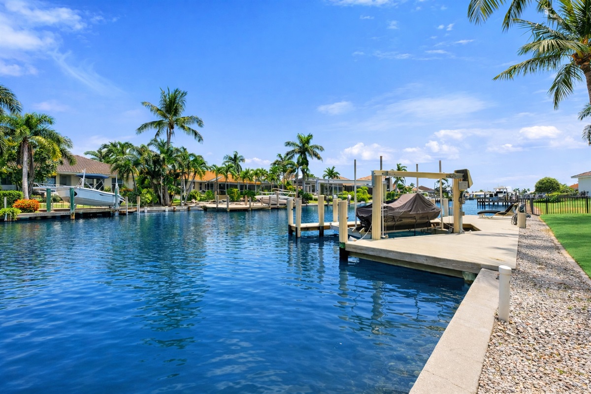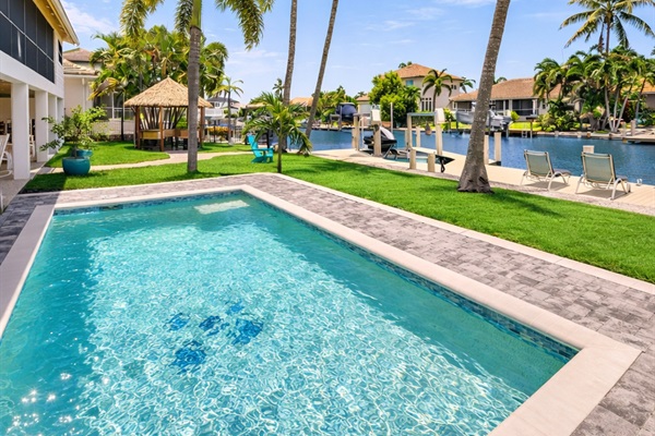 Step outside to two expansive outdoor areas that invite you to unwind in the Florida sunshine. Enjoy the private outdoor pool, fire up the fully equipped outdoor BBQ, or simply relax and take in the peaceful canal setting. A private dock is available for enjoying the waterfront atmosphere (please note: the boat lift is not available, and there is no boat or jet ski included)